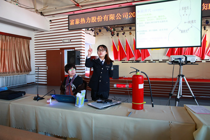 講座邀請內蒙古自治區消防法治研究會教官劉晨和吳丹丹擔任主講。劉晨教官從火災發生的原因、怎樣預防火災、火場逃生、滅火器的正確使用以及如何正確報警等方面作了深入淺出的講解,同時還列舉了大量實際生活中的真實案例,講授了火災防范措施、自救逃生和不同火災的滅火方式等知識;吳丹丹教官重點講解了職業病防治、防止空氣污染及日常養生等知識。