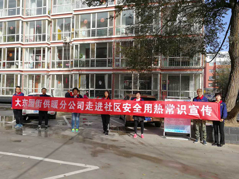 為了進一步了解熱用戶的用熱需求,做好安全用熱宣傳工作,從9月26日起,大東園街供暖分公司組織員工按供熱區域分組走進片區內的各小區,開展“安全用熱常識宣傳”活動。